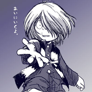 表紙を描いているときずっと垂れ流していたせいか、上々颱風の「アイニアイニ.」がすっかり私の中での松岡さんの曲になってしまった。かわいい曲なんだけど、淡々と「あいにいくよ」を繰り返してる抑揚のなさと言うか…ちょっとした不気味さを感じてしまって。内容としては要約すると夢を伝ってキミに会いに行くよ、みたいな歌詞なのかな。アイニアイニ、は「愛に会いに、」でしょうかね。取り方は人それぞれでしょうが私の中ではそんな感じ。