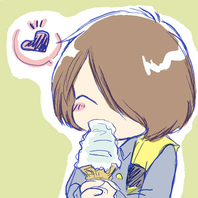 昨日うちの近所の道の駅(…が近くにあるくらいど田舎です)で食べたラ・フランスソフトクリームがことのほか美味しかったので、戸田くんにもご相伴。ソフトだから松岡さんとも思ったけど続きのソレが描きたかったので戸田くんに(笑)。というわけで続きにソレを収納。
