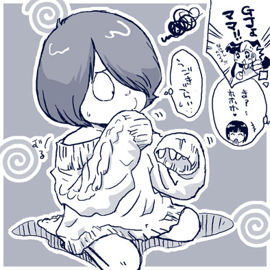 ユメコちゃんを水系の危機から救って送り届けたら、優子ママに家に引っ張り込まれて剥かれて学童服乾くまでと正夫氏のセーターひっかぶされたちびっこの図。