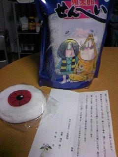 景品は鬼太郎煎餅と目玉親父エコバック♪もったいなくて煎餅食えません。