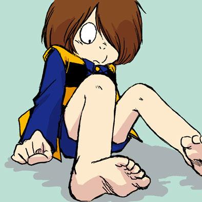 90年代にルーズソックスが流行りましたが、アレと同じ原理ですかね。足首ぶっとくした方が、直線的でかっこ良く見える。絵に描くにも、私昔から足首が苦手で、レッグウオーマーつけたり(←ex.キャッツ)ブーツはいてたり(←ex.SBM)する方が描きやすかった。鬼太郎は素足だからそういう小細工できないけど、戸田くんの脚はその点とっても書きやすかったりします(笑)。もう松岡さん描く時も高山くん描く時も同じようにまっすぐ脚で描いてしまってるけどね。4期5期は基本的には細足首なので、忠実に書こうとすると描きにくいっす…。